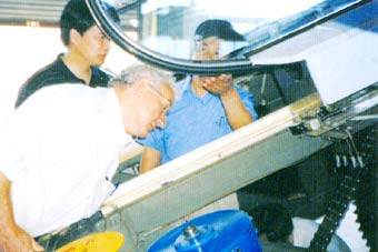 法國(guó)AMS電梯公司總裁阿蘭.雷諾先生,在大通電梯董事長(zhǎng)張祖鈞先生的陪同下,參觀公司生產(chǎn)